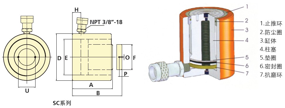 · 单作用, 弹簧回缩