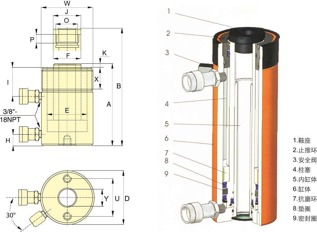 中空柱塞设计,双作用液压回缩,既可产生推力又产生拉力