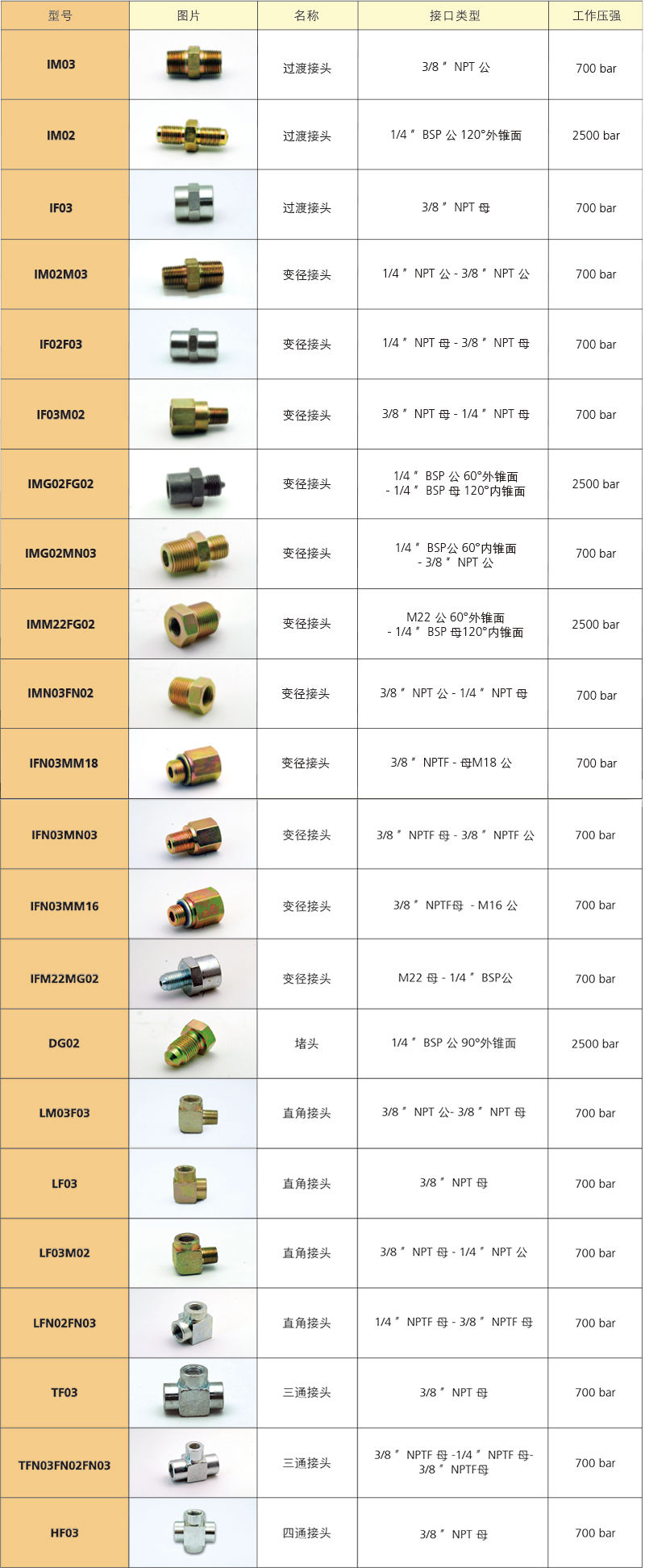 *另可定制其他形式螺纹的过渡接头 *可另订制1500bar及2800bar过渡接头